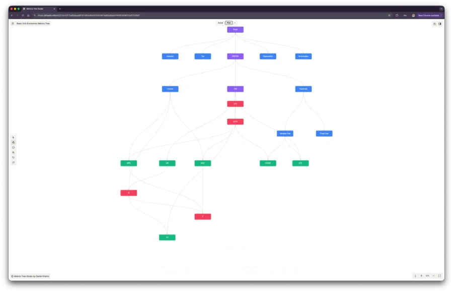 In this interactive block you can see what a metric tree built in Metric Tree Studio looks like and how it implements these two usage scenarios.